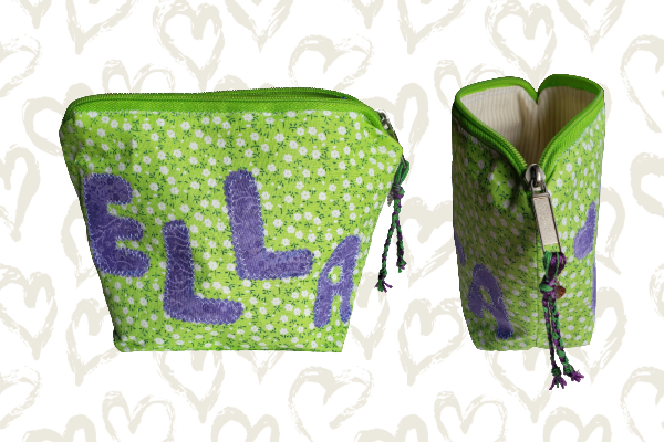 trousse multi usage personnalisable aux couleurs et au prénom du destinataire,